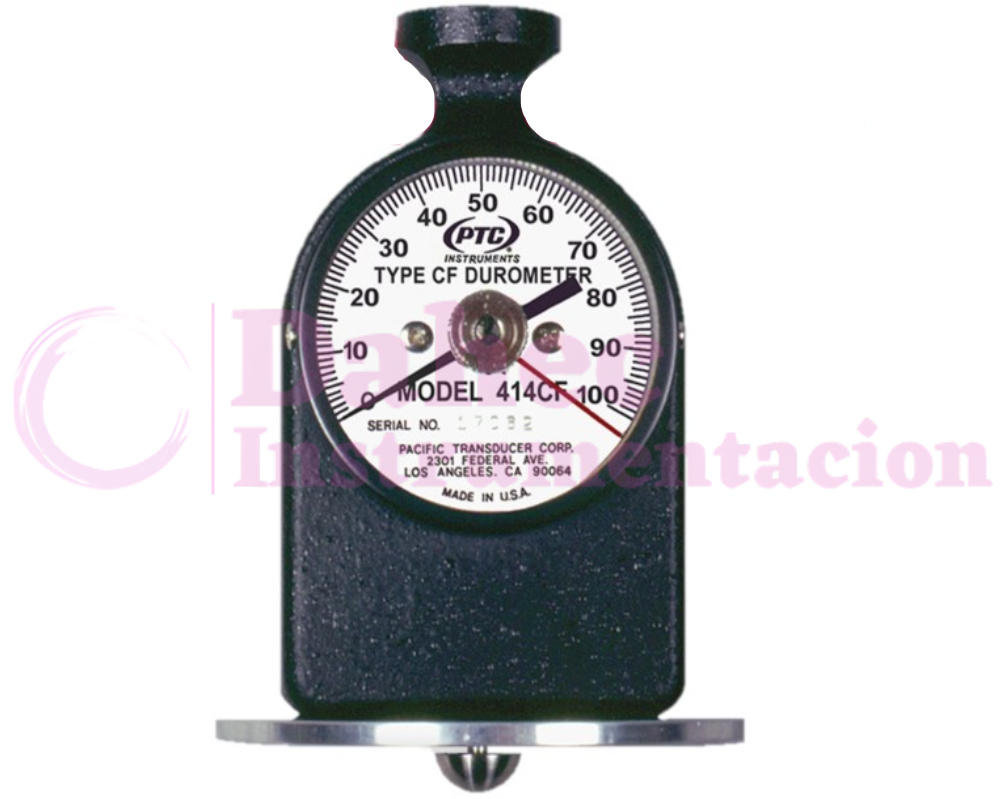 El Durometro ASTM CF PC-414 tipo PTC  se fabrica y diseña para medir la dureza de indentación de todas las generaciones de productos de espuma: tipos de soplado de Freón, tipos de soplado de agua y nuevas espumas compuestas. El instrumento cuenta con un dial de aluminio de bajo brillo con números audaces y fáciles de leer.