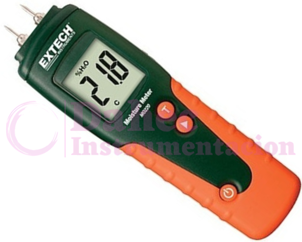 - Mida directamente con las clavijas de humedad incorporadas o utilice una sonda remota de presión manual sobre las superficies duras