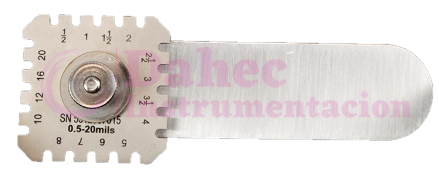 El instrumento construido en acero tiene cuatro caras, cada una con una serie de «»dientes»» escalonados con diferenciales de altura graduados en milésimas de pulgada.