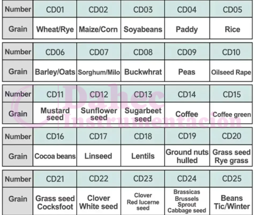 Cambie fácilmente entre granos para obtener un contenido preciso de humedad, adaptado a su cultivo específico.