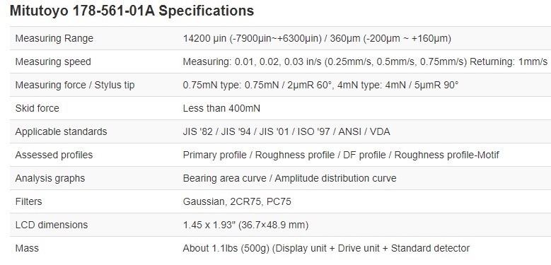 Rugosimetro SJ-210 Mitutoyo 178-561-01A 39 parámetros de análisis,Unidad de disco extraíble incluye maletín de transporte USB, RS-232 y salida de datos SPC. Auto función de apagado automático Una tarjeta micro-SD que permite guardar hasta 10.000 resultados